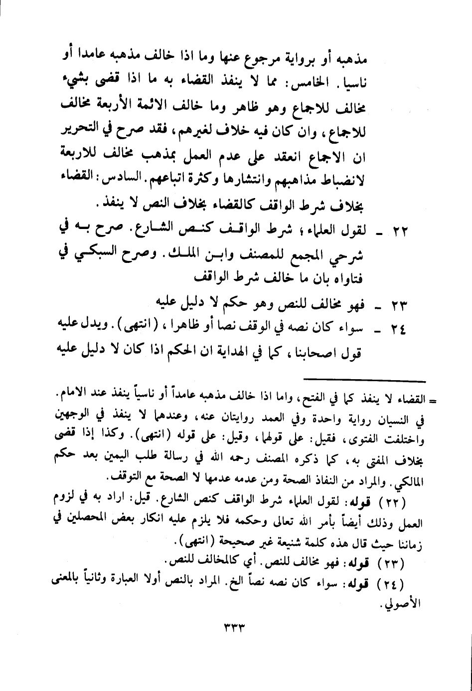ِ كَالْقَضَاءِ بِخِلَافِ النَّصِّ لَا يَنْفُذُ 22 -؛ لِقَوْلِ الْعُلَمَاءِ: شَرْطُ الْوَاقِفِ كَنَصِّ الشَّارِعِ.