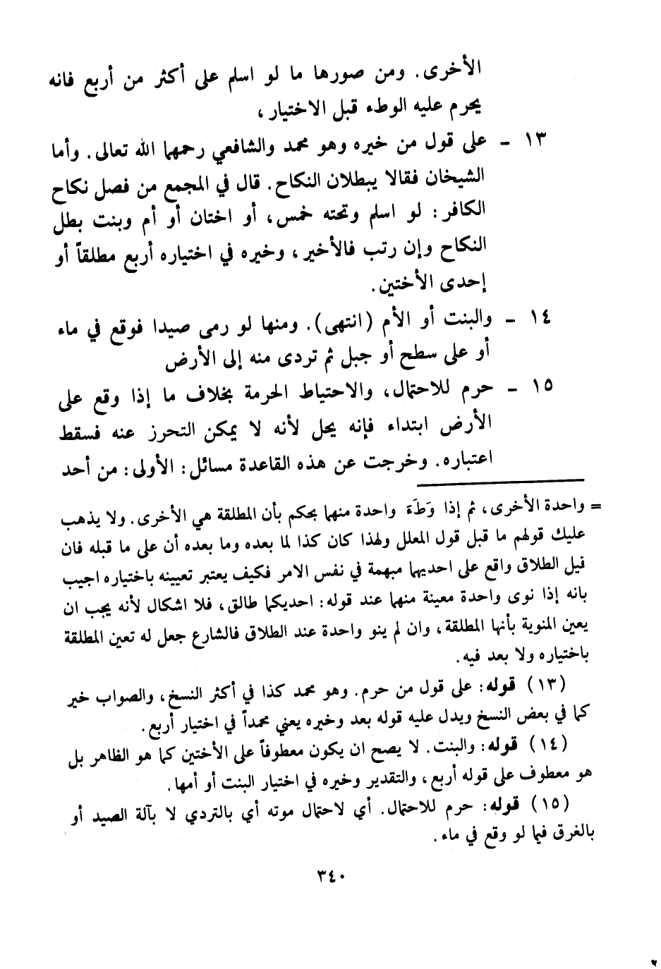 (13) قَوْلُهُ: عَلَى قَوْلِ مَنْ حَرَّمَ، وَهُوَ مُحَمَّدٌ كَذَا فِي أَكْثَرِ النُّسَخِ، وَالصَّوَابُ خَيَّرَ كَمَا فِي بَعْضِ النُّسَخِ، وَيَدُلُّ عَلَيْهِ قَوْلُهُ بَعْدُ: وَخَيَّرَهُ يَعْنِي مُحَمَّدًا فِي اخْتِيَارِ أَرْبَعٍ.