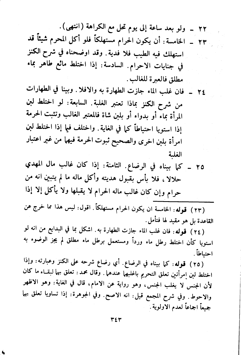 24 - فَإِنْ غَلَبَ الْمَاءُ جَازَتْ الطَّهَارَةُ بِهِ، وَإِلَّا فَلَا، وَبَيَّنَّا فِي الطِّهَارَاتِ مِنْ شَرْحِ الْكَنْزِ بِمَاذَا تُعْتَبَرُ الْغَلَبَةُ