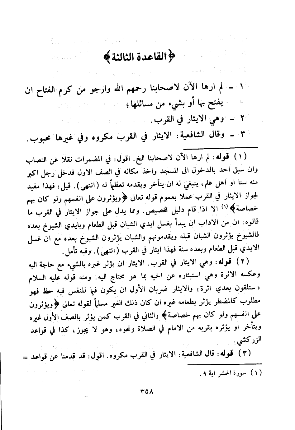 ـــــــــــــــــــــــــــــQ [الْقَاعِدَةُ الثَّالِثَةُ الْإِيثَارُ فِي الْقُرَبِ]