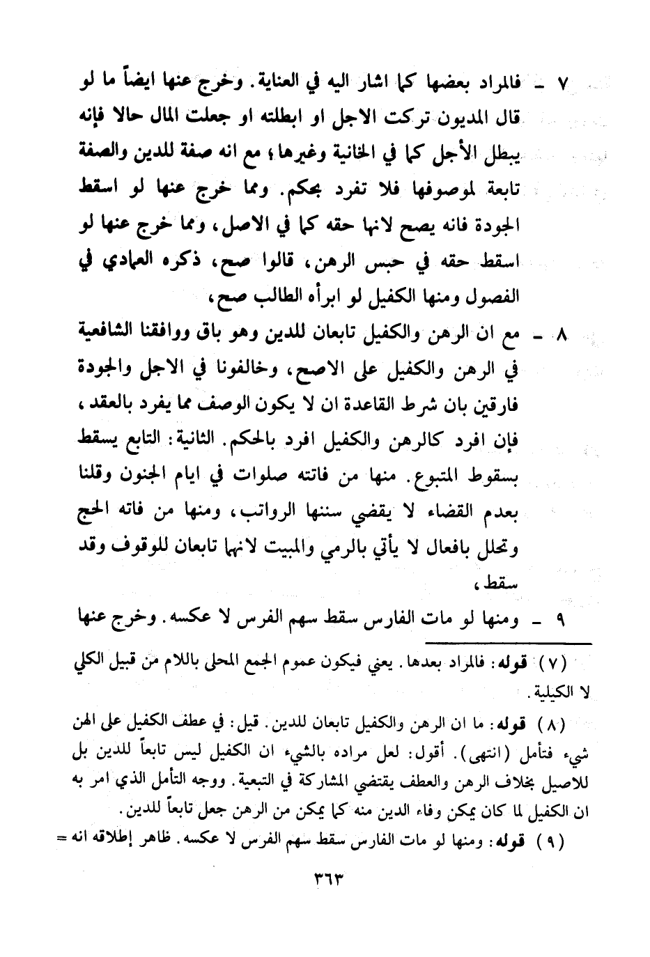 (8) قَوْلُهُ: مَعَ أَنَّ الرَّهْنَ، وَالْكَفِيلَ تَابِعَانِ لِلدَّيْنِ: قِيلَ: فِي عَطْفِ الْكَفِيلِ عَلَى الرَّهْنِ شَيْءٌ فَتَأَمَّلْ (انْتَهَى) .