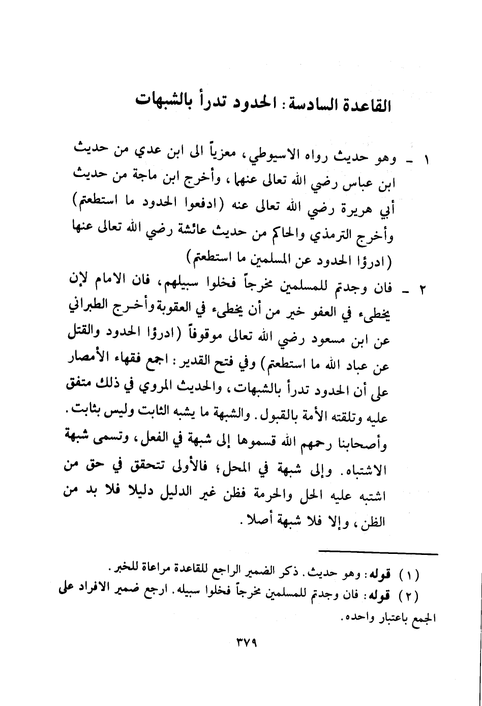 ـــــــــــــــــــــــــــــQ [الْقَاعِدَةُ السَّادِسَةُ الْحُدُودُ تُدْرَأُ بِالشُّبُهَاتِ]