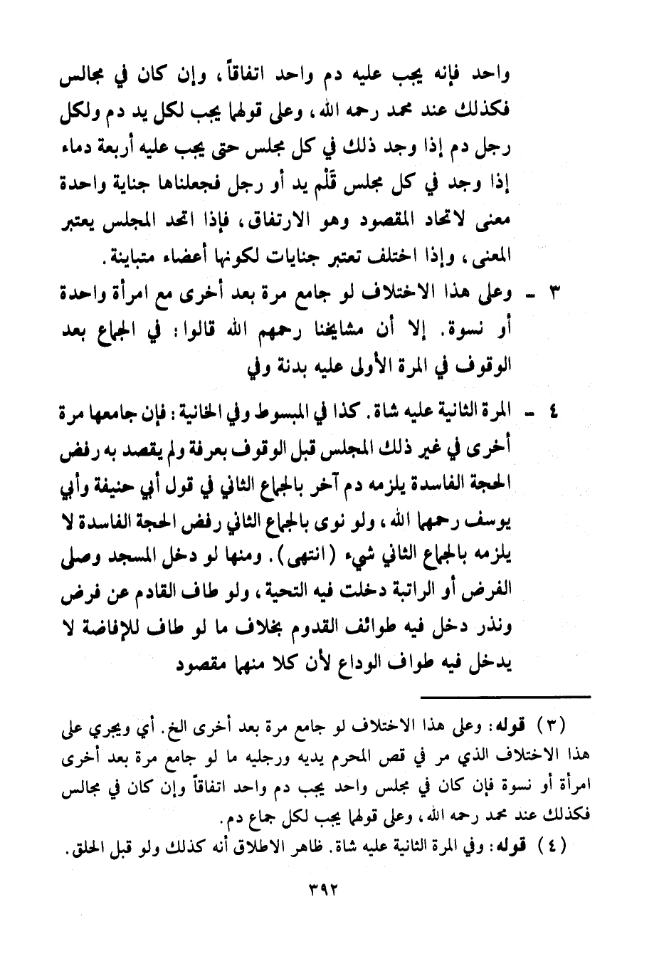 3 - وَعَلَى هَذَا الِاخْتِلَافِ لَوْ جَامَعَ مَرَّةً بَعْدَ أُخْرَى مَعَ امْرَأَةٍ وَاحِدَةٍ أَوْ نِسْوَةٍ