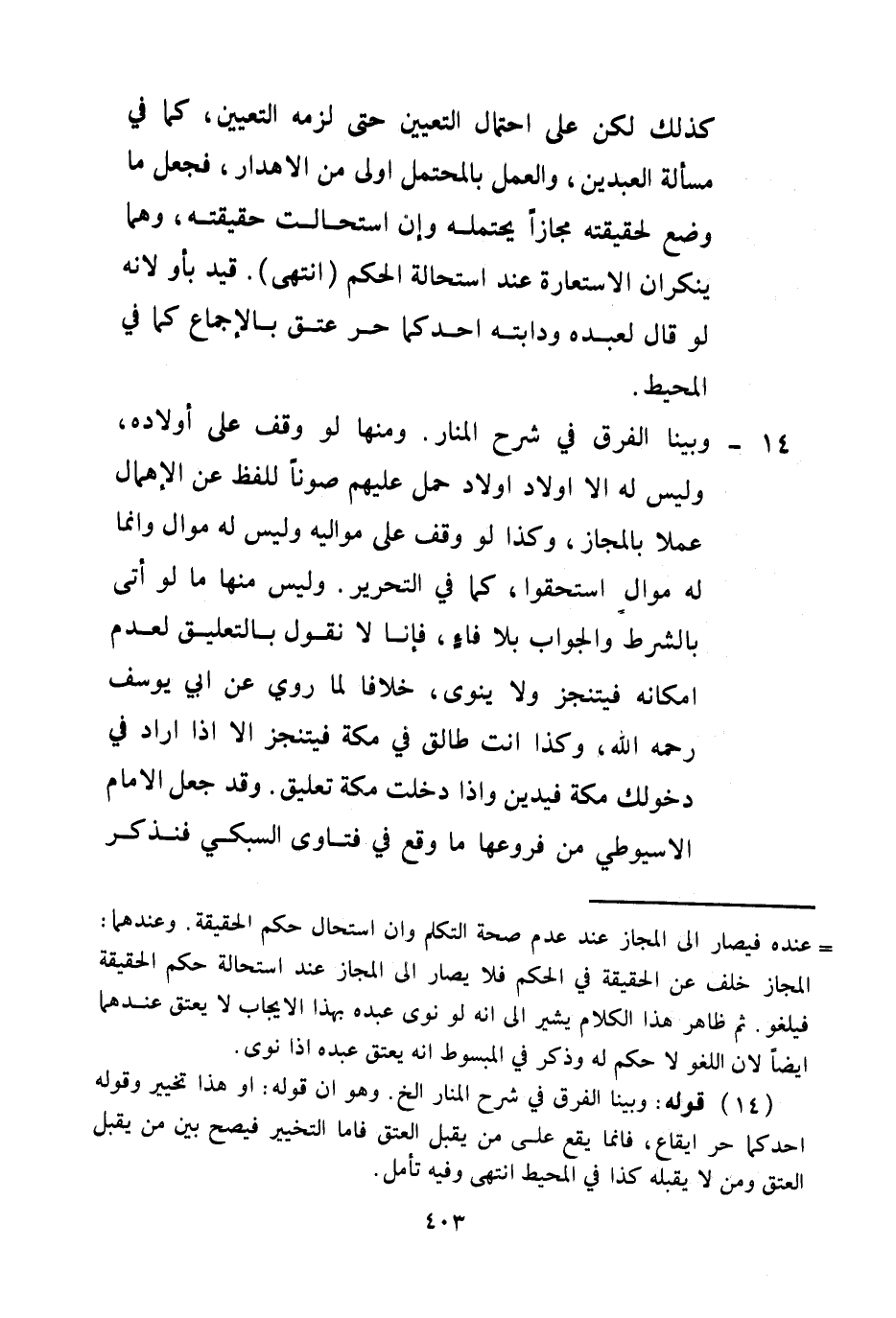 كَذَلِكَ لَكِنْ عَلَى احْتِمَالِ التَّعْيِينِ حَتَّى لَزِمَهُ التَّعْيِينُ، كَمَا فِي مَسْأَلَةِ الْعَبْدَيْنِ، وَالْعَمَلُ بِالْمُحْتَمَلِ أَوْلَى مِنْ الْإِهْدَارِ، فَجَعَلَ مَا وُضِعَ لِحَقِيقَتِهِ مَجَازًا يَحْتَمِلُهُ، وَإِنْ اسْتَحَالَتْ حَقِيقَتُهُ، وَهُمَا يُنْكِرَانِ الِاسْتِعَارَةَ عِنْدَ اسْتِحَالَةِ الْحُكْمِ (انْتَهَى) .