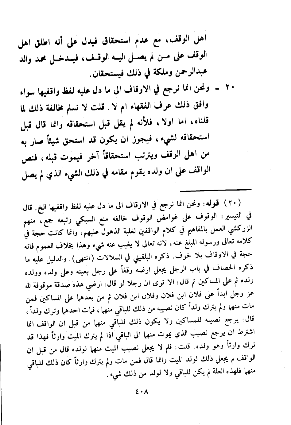 أَهْلِ الْوَقْفِ، مَعَ عَدَمِ اسْتِحْقَاقٍ فَيَدُلُّ عَلَى أَنَّهُ أَطْلَقَ أَهْلَ الْوَقْفِ عَلَى مَنْ لَمْ يَصِلْ إلَيْهِ الْوَقْفُ " فَيَدْخُلُ مُحَمَّدٌ وَالِدُ عَبْدِ الرَّحْمَنِ وَمَلَكَةُ فِي ذَلِكَ فَيَسْتَحِقَّانِ. 20 -