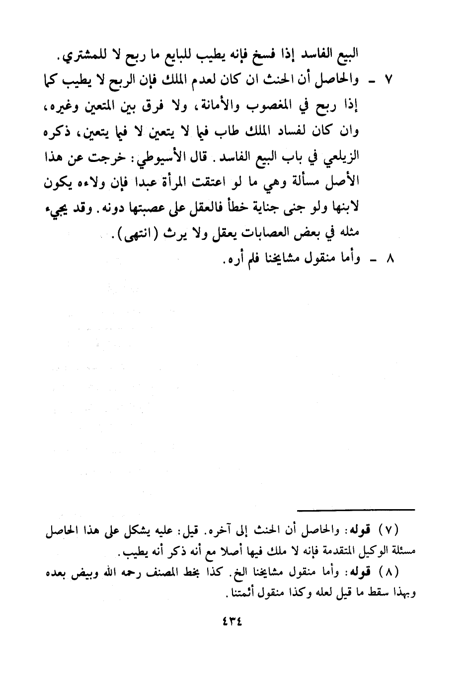 الْبَيْعِ الْفَاسِدِ إذَا فُسِخَ فَإِنَّهُ يَطِيبُ لِلْبَائِعِ مَا رَبِحَ لَا لِلْمُشْتَرِي. 7 -