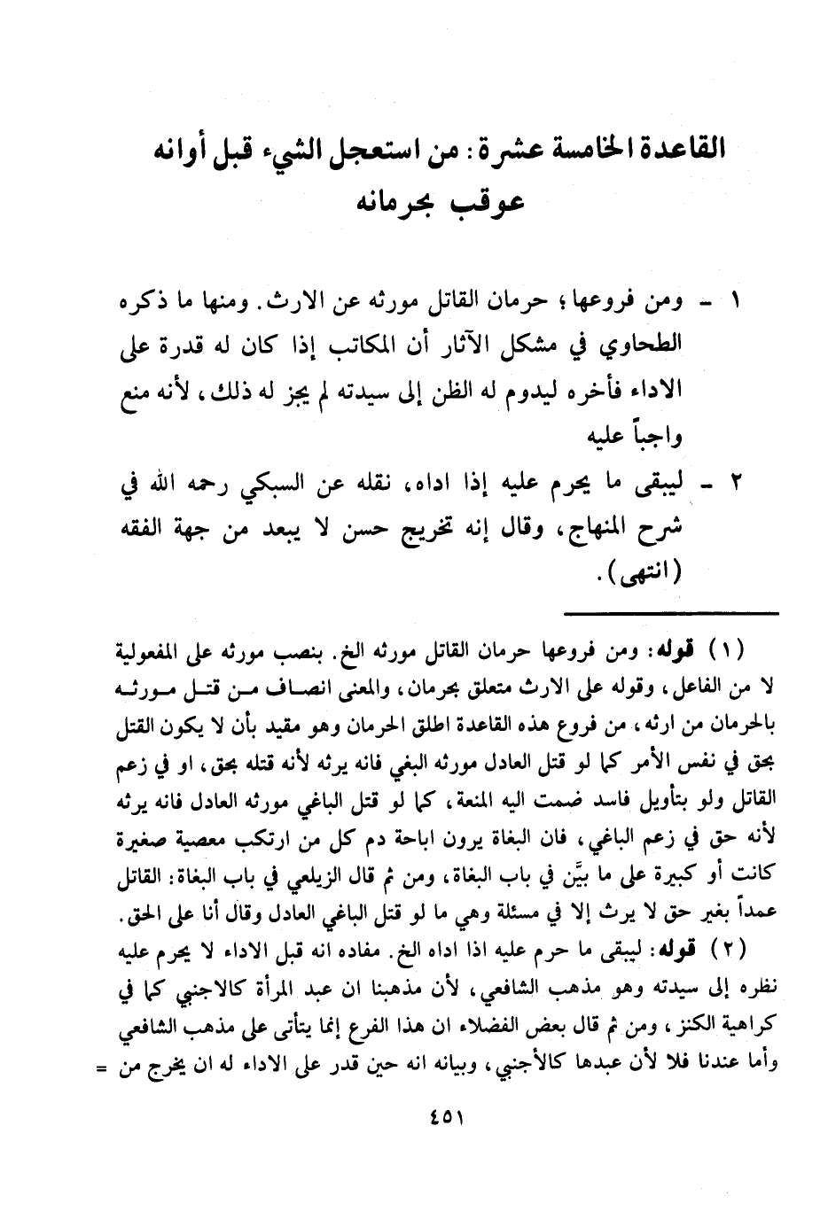 ـــــــــــــــــــــــــــــQ [الْقَاعِدَةُ الْخَامِسَةَ عَشْرَةَ مَنْ اسْتَعْجَلَ الشَّيْءَ قَبْلَ أَوَانِهِ عُوقِبَ بِحِرْمَانِهِ]