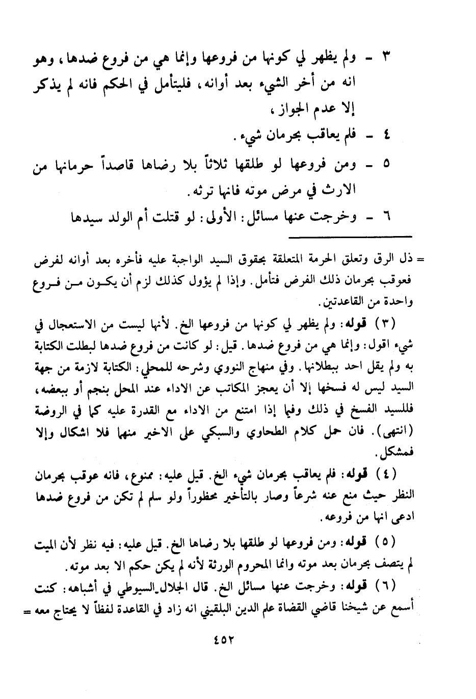 ـــــــــــــــــــــــــــــQذُلِّ الرِّقِّ وَتَعَلُّقِ الْحُرْمَةِ الْمُتَعَلِّقَةِ بِحُقُوقِ السَّيِّدِ الْوَاجِبَةِ عَلَيْهِ فَأَخَّرَهُ بَعْدَ أَوَانِهِ لِفَرْضٍ فَعُوقِبَ بِحِرْمَانِ ذَلِكَ الْغَرَضِ فَتَأَمَّلْ. وَإِذَا لَمْ يُؤَوَّلْ كَذَلِكَ لَزِمَ أَنْ يَكُونَ مِنْ فُرُوعِ وَاحِدَةٍ مِنْ الْقَاعِدَتَيْنِ.