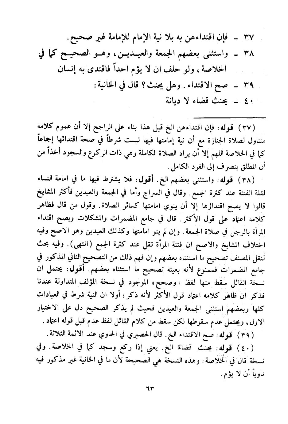 فَإِنَّ اقْتِدَاءَهُنَّ بِهِ بِلَا نِيَّةِ الْإِمَامِ لِلْإِمَامَةِ غَيْرُ صَحِيحٍ. 38 -