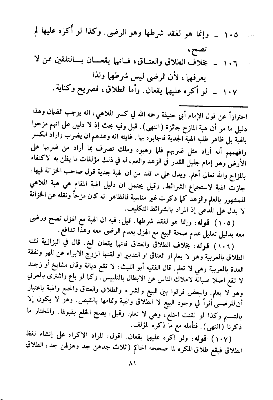 وَقِيلَ يُحْتَمَلُ أَنَّ دَلِيلَ الْهِبَةِ الْمَقَامَ هِيَ هِبَةُ الْمُلَاهِي لِلْمَشْهُورِ بِالْعِلْمِ وَالزُّهْدِ كَمَا ذَكَرَتْ غَيْرُ مُنَاسَبَةٍ فَالظَّاهِرُ أَنَّهُ كَانَ مَزْحًا وَنَقْلُهُ عَنْ الْخِزَانَةِ لَا يَدُلُّ عَلَى الْمُدَّعِي إذْ الْمُرَادُ بِالشَّرَائِطِ التَّكْلِيفُ (105)