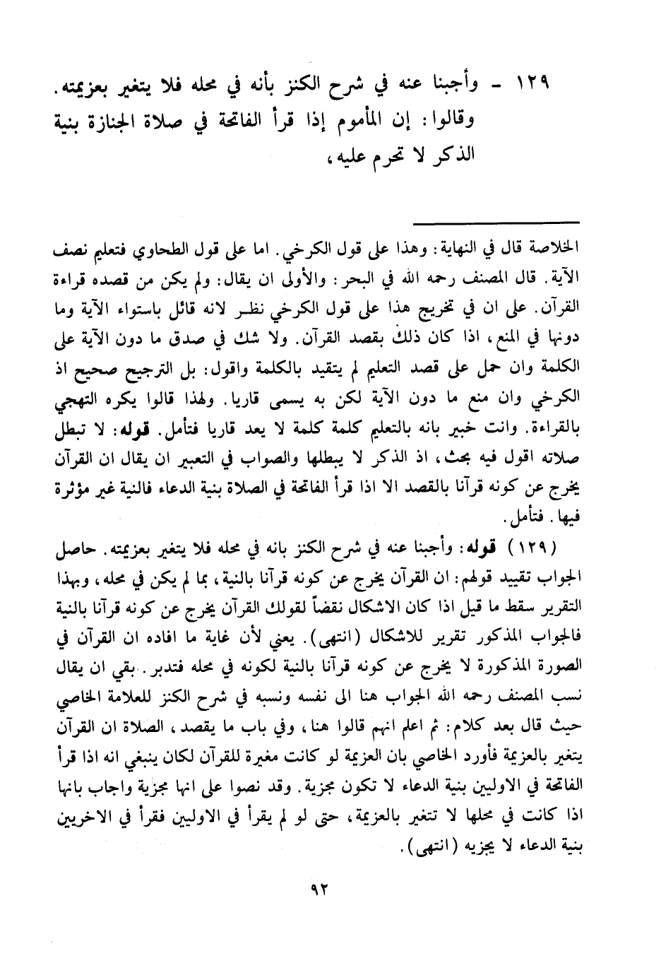 فَتَأَمَّلْ (129) قَوْلُهُ: وَأَجَبْنَا عَنْهُ فِي شَرْحِ الْكَنْزِ بِأَنَّهُ فِي مَحِلِّهِ فَلَا يَتَغَيَّرُ بِعَزِيمَتِهِ.