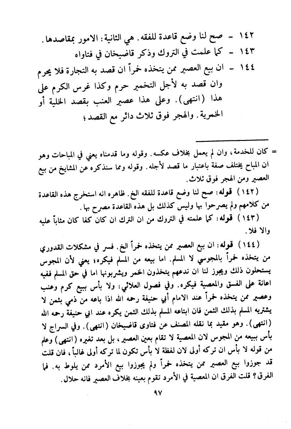 (144) قَوْلُهُ: إنَّ بَيْعَ الْعَصِيرِ مِمَّنْ يَتَّخِذُهُ خَمْرًا إلَخْ.