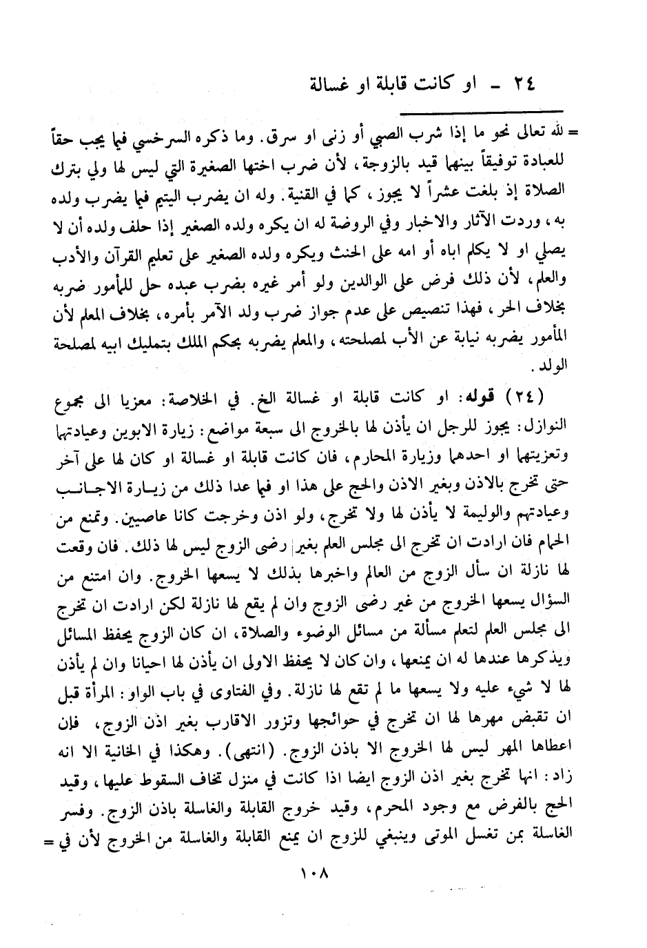 وَإِنْ امْتَنَعَ مِنْ السُّؤَالِ يَسَعُهَا الْخُرُوجُ مِنْ غَيْرِ رِضَى الزَّوْجِ وَإِنْ لَمْ يَقَعْ لَهَا نَازِلَةٌ لَكِنْ أَرَادَتْ أَنْ تَخْرُجَ إلَى مَجْلِسِ الْعِلْمِ لِتَعْلَمَ مَسْأَلَةً مِنْ مَسَائِلِ الْوُضُوءِ وَالصَّلَاةِ، إنْ كَانَ الزَّوْجُ يَحْفَظُ الْمَسَائِلَ وَيَذْكُرُهَا عِنْدَهَا لَهُ أَنْ يَمْنَعَهَا، وَإِنْ كَانَ لَا يَحْفَظُ الْأَوْلَى أَنْ يَأْذَنَ لَهَا أَحْيَانًا وَإِنْ لَمْ يَأْذَنْ لَهَا لَا شَيْءَ عَلَيْهِ وَلَا يَسَعُهَا مَا لَمْ تَقَعْ لَهَا نَازِلَةٌ.