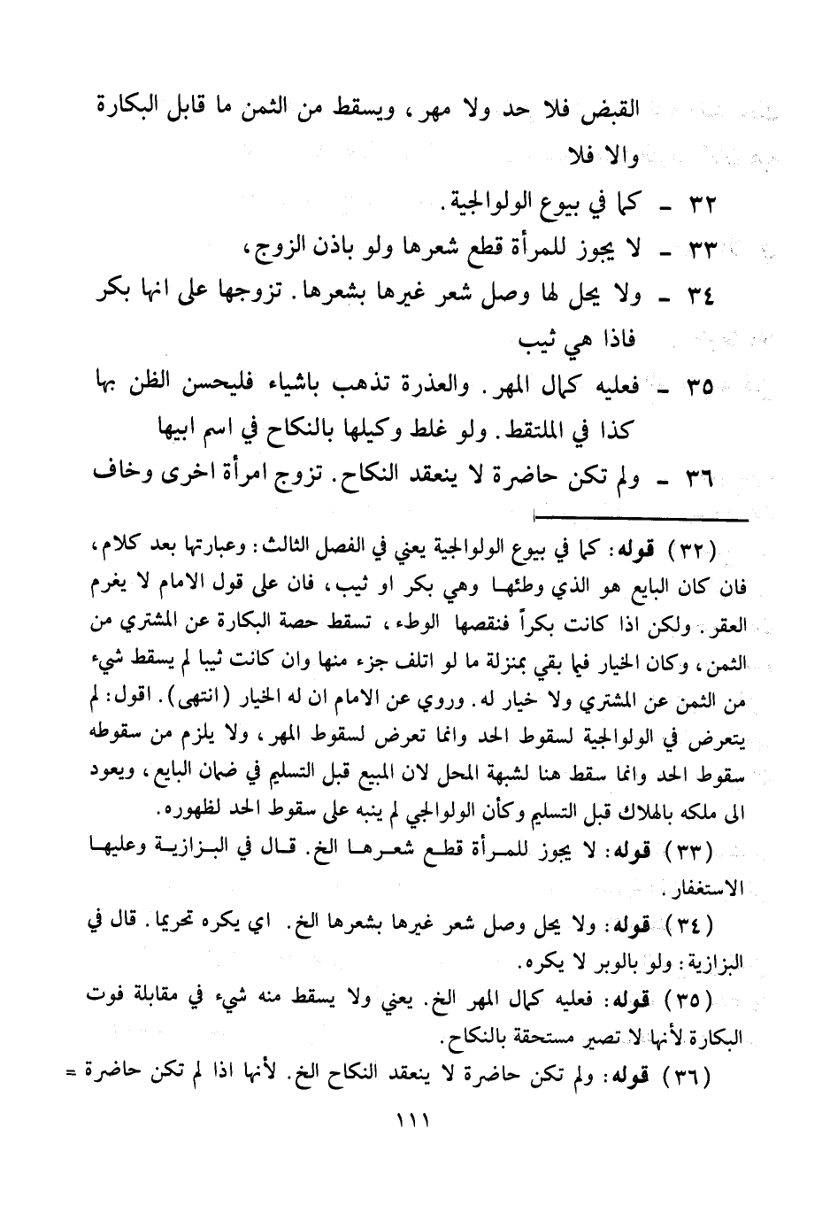 33 - لَا يَجُوزُ لِلْمَرْأَةِ قَطْعُ شَعْرِهَا وَلَوْ بِإِذْنِ الزَّوْجِ، 34 - وَلَا يَحِلُّ لَهَا وَصْلُ شَعْرِ غَيْرِهَا بِشَعْرِهَا.
