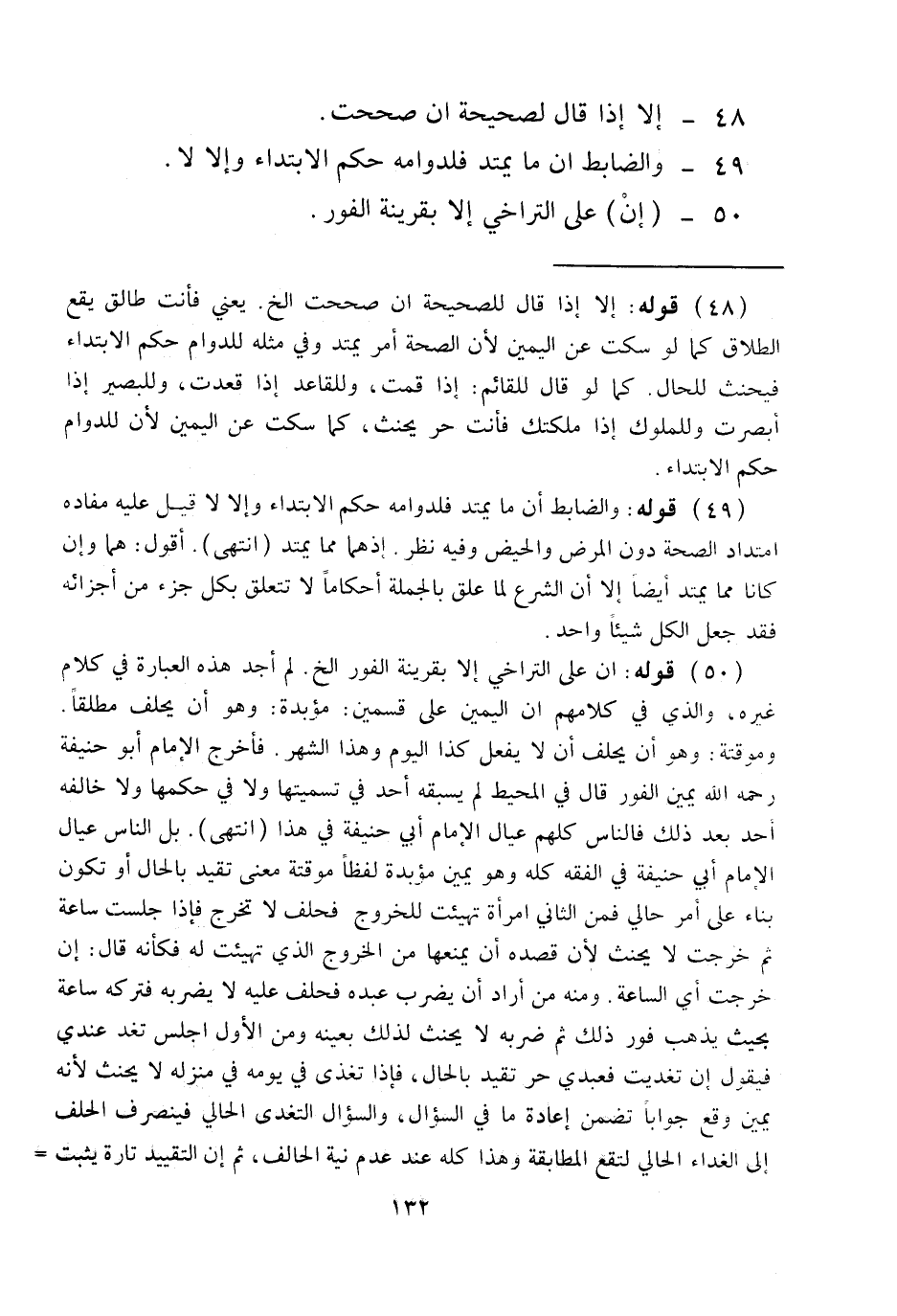 (49) قَوْلُهُ: وَالضَّابِطُ أَنَّ مَا يَمْتَدُّ فَلِدَوَامِهِ حُكْمُ الِابْتِدَاءِ وَإِلَّا لَا قِيلَ عَلَيْهِ: مُفَادُهُ امْتِدَادُ الصِّحَّةِ دُونَ الْمَرَضِ وَالْحَيْضِ وَفِيهِ نَظَرٌ.
