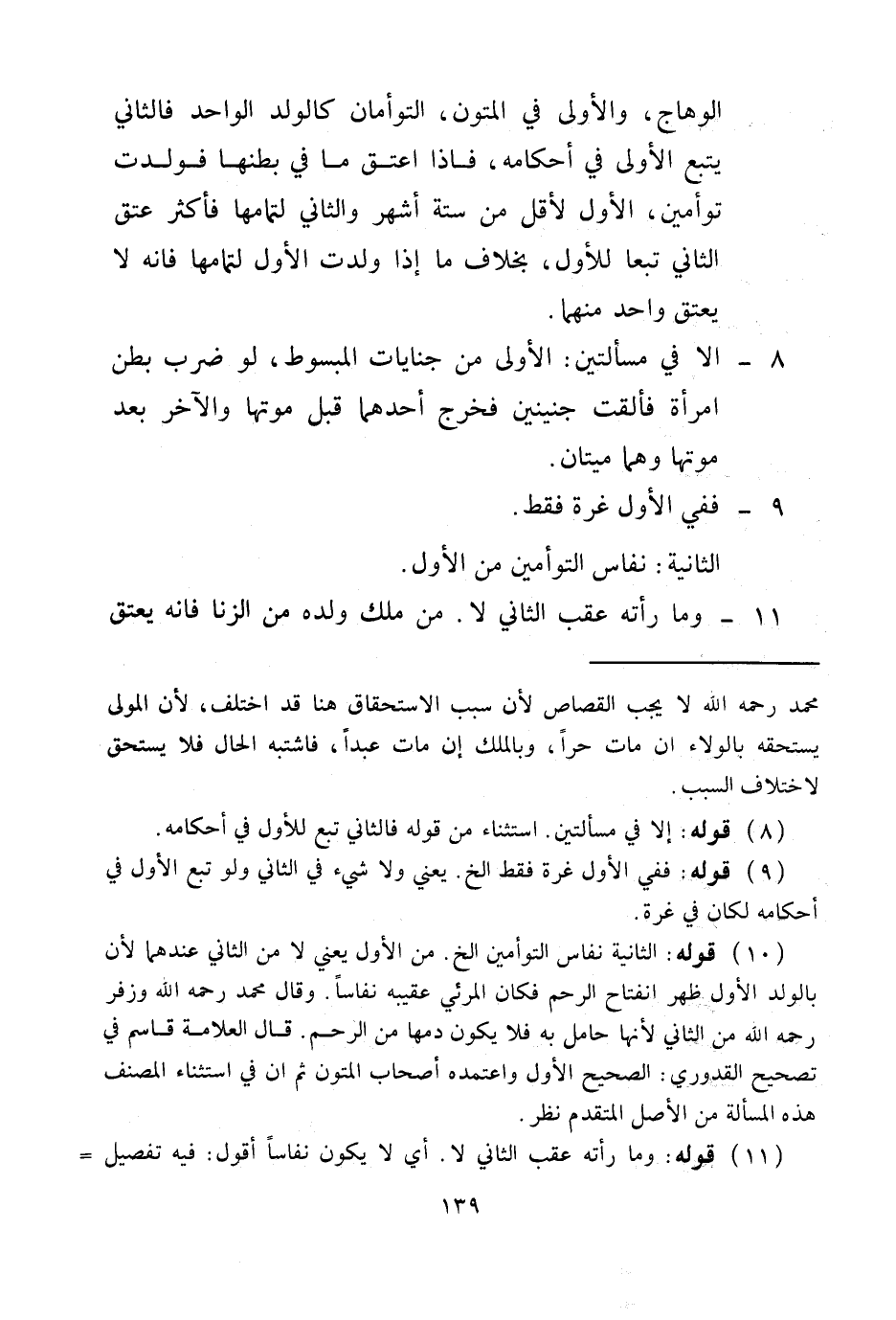 فِي السِّرَاجِ الْوَهَّاجِ، وَالْأُولَى فِي الْمُتُونِ.