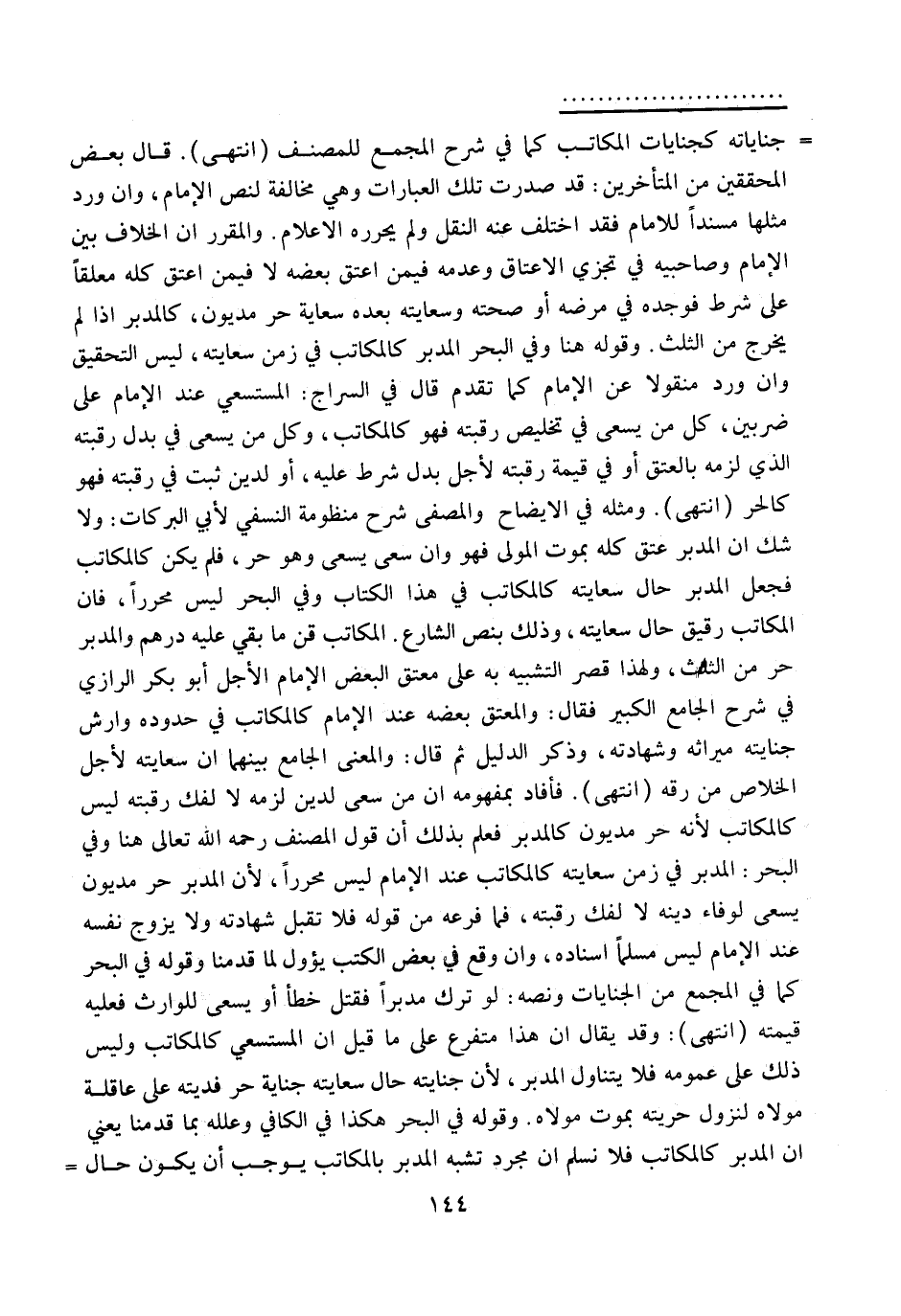 ـــــــــــــــــــــــــــــQجِنَايَاتِهِ كَجِنَايَاتِ الْمُكَاتَبِ كَمَا فِي شَرْحِ الْمَجْمَعِ لِلْمُصَنِّفِ (انْتَهَى) .