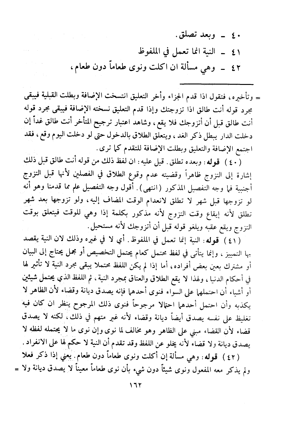 41 - النِّيَّةُ إنَّمَا تَعْمَلُ فِي الْمَلْفُوظِ 42 -