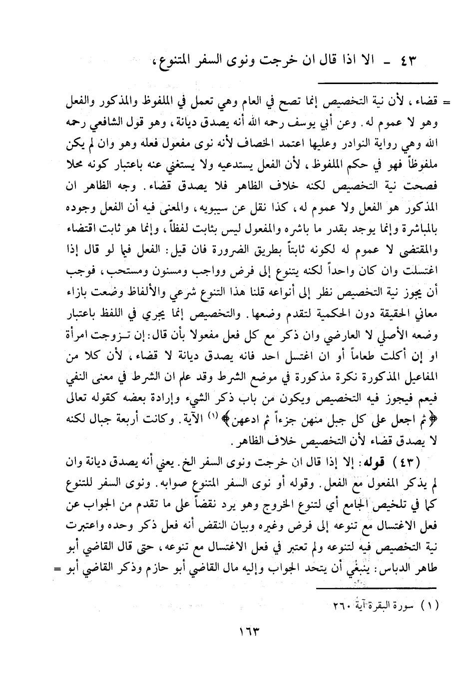 وَقَوْلُهُ أَوْ نَوَى السَّفَرَ الْمُتَنَوِّعَ صَوَابُهُ: وَنَوَى السَّفَرَ لِلتَّنَوُّعِ كَمَا فِي تَلْخِيصِ الْجَامِعِ أَيْ لِتَنَوُّعِ الْخُرُوجِ وَهُوَ يَرِدُ نَقْضًا عَلَى مَا تَقَدَّمَ مِنْ الْجَوَابِ عَنْ فِعْلِ الِاغْتِسَالِ مَعَ تَنَوُّعِهِ إلَى فَرْضٍ وَغَيْرِهِ.