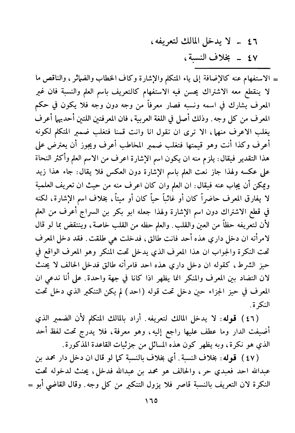 لَا يَدْخُلُ الْمَالِكُ لِتَعْرِيفِهِ، 47 - بِخِلَافِ النِّسْبَةِ،