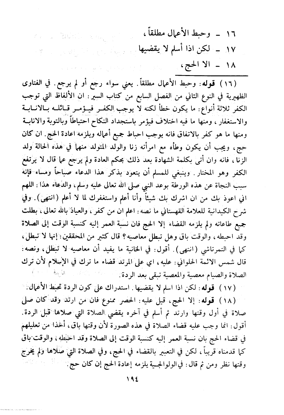 ـــــــــــــــــــــــــــــQ (16) قَوْلُهُ: وَحَبْطُ الْأَعْمَالِ مُطْلَقًا يَعْنِي سَوَاءٌ رَجَعَ أَوْ لَمْ يَرْجِعْ.