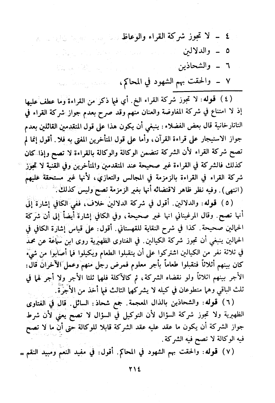 لَا تَجُوزُ شَرِكَةُ الْقُرَّاءِ وَالْوُعَّاظِ