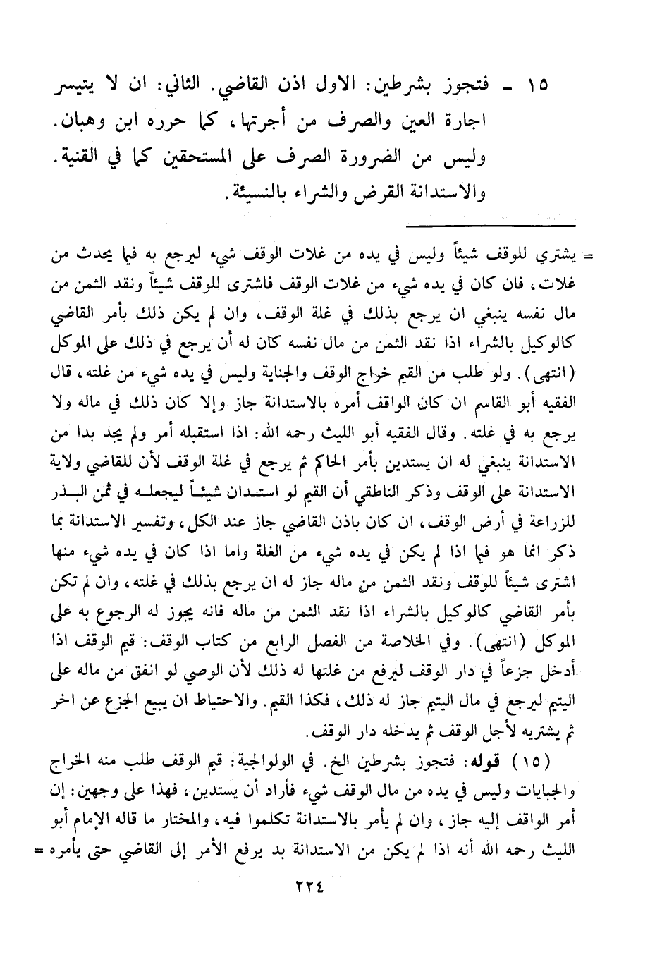 (15) قَوْلُهُ: فَتَجُوزُ بِشَرْطَيْنِ إلَخْ. فِي الْوَلْوَالِجيَّةِ: قَيِّمُ الْوَقْفِ طُلِبَ مِنْهُ الْخَرَاجُ وَالْجِبَايَاتُ وَلَيْسَ فِي يَدِهِ مِنْ مَالِ الْوَقْفِ شَيْءٌ فَأَرَادَ أَنْ يَسْتَدِينَ، فَهَذَا عَلَى وَجْهَيْنِ: إنْ أَمَرَ الْوَاقِفُ إلَيْهِ جَازَ، وَإِنْ لَمْ يَأْمُرْ بِالِاسْتِدَانَةِ تَكَلَّمُوا فِيهِ، وَالْمُخْتَارُ مَا قَالَهُ الْإِمَامُ أَبُو اللَّيْثِ - رَحِمَهُ اللَّهُ - أَنَّهُ إذَا لَمْ يَكُنْ مِنْ الِاسْتِدَانَةِ بُدٌّ يَرْفَعُ الْأَمْرَ إلَى الْقَاضِي حَتَّى يَأْمُرَهُ