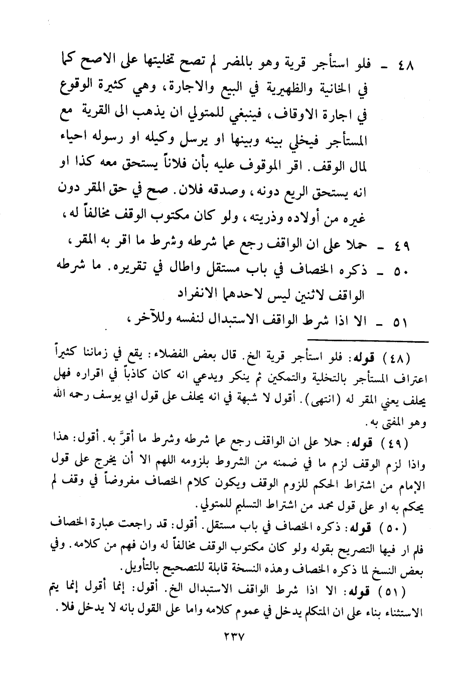 49 - حَمْلًا عَلَى أَنَّ الْوَاقِفَ رَجَعَ عَمَّا شَرَطَهُ وَشَرَطَ مَا أَقَرَّ بِهِ الْمُقِرُّ، 50 - ذَكَرَهُ الْخَصَّافُ فِي بَابٍ مُسْتَقِلٍّ وَأَطَالَ فِي تَقْرِيرِهِ