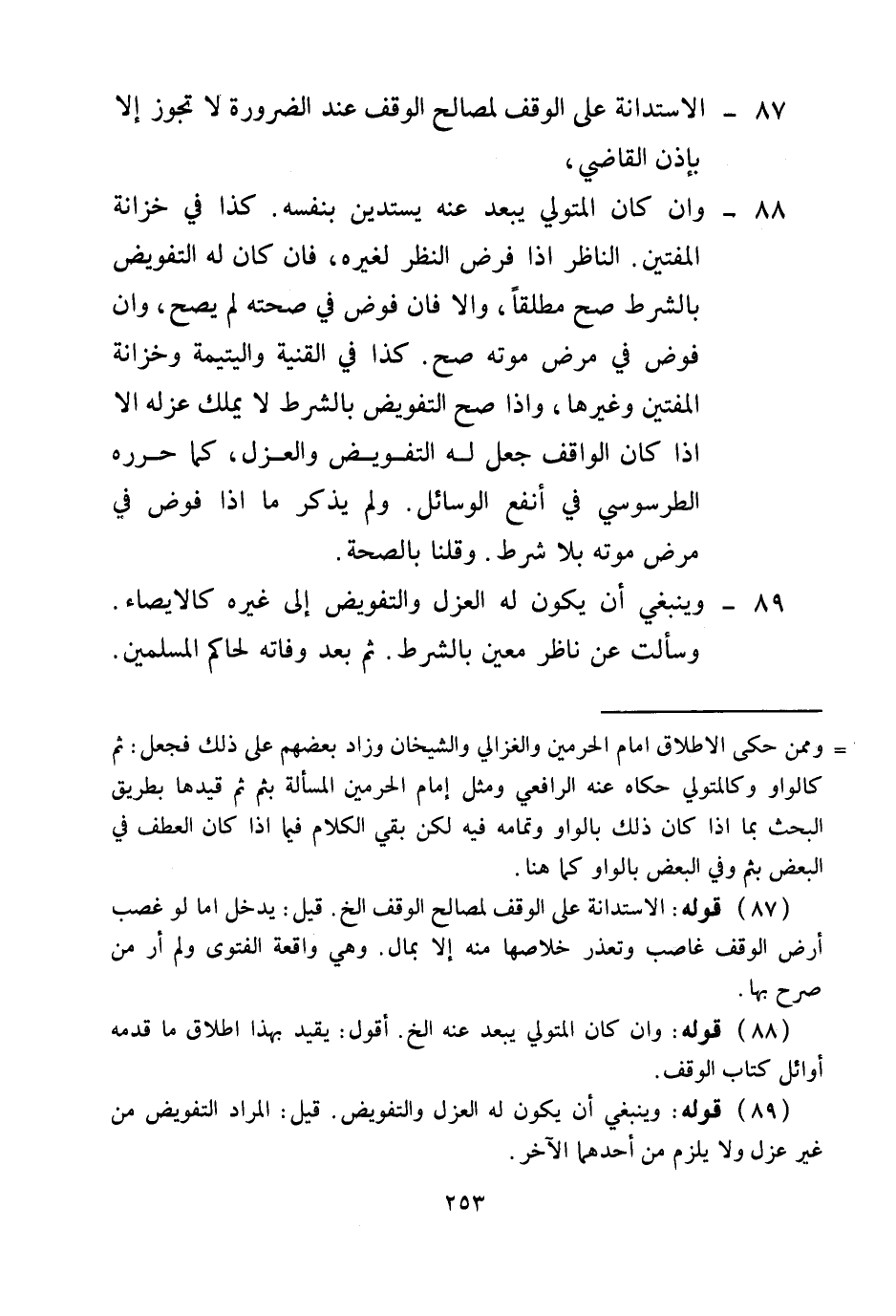 (89) قَوْلُهُ: وَيَنْبَغِي أَنْ يَكُونَ لَهُ الْعَزْلُ وَالتَّفْوِيضُ قِيلَ: الْمُرَادُ التَّفْوِيضُ مِنْ غَيْرِ عَزْلٍ وَلَا يَلْزَمُ مِنْ أَحَدِهِمَا الْآخَرُ.