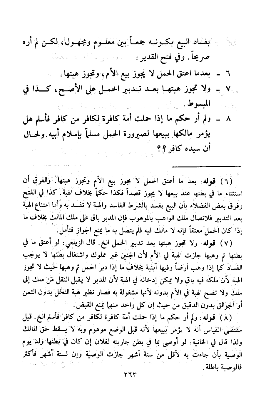 8 - وَلَمْ أَرَ حُكْمَ مَا إذَا حَمَلَتْ أَمَةٌ كَافِرَةٌ لِكَافِرٍ مِنْ كَافِرٍ فَأَسْلَمَ هَلْ يُؤْمَرُ مَالِكُهَا بِبَيْعِهَا لِصَيْرُورَةِ الْحَمْلِ مُسْلِمًا بِإِسْلَامِ أَبِيهِ. وَلِحَالِ أَنَّ سَيِّدَهُ كَافِرٌ؟