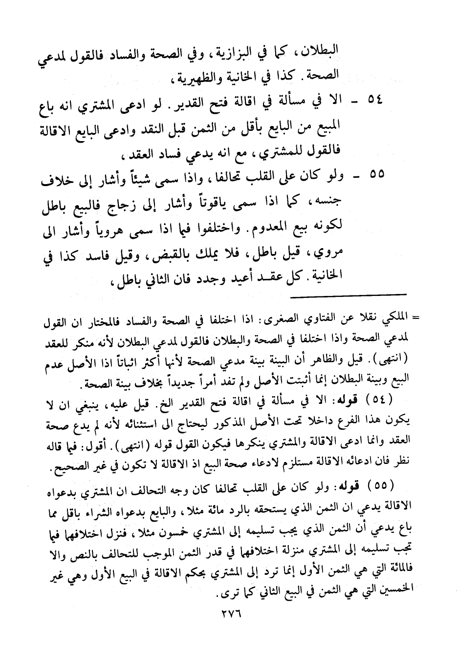 . (54) قَوْلُهُ: إلَّا فِي مَسْأَلَةٍ فِي إقَالَةِ فَتْحِ الْقَدِيرِ إلَخْ. قِيلَ عَلَيْهِ، يَنْبَغِي أَنْ لَا يَكُونَ هَذَا الْفَرْعُ دَاخِلًا تَحْتَ الْأَصْلِ الْمَذْكُورِ لِيَحْتَاجَ إلَى اسْتِثْنَائِهِ؛ لِأَنَّهُ لَمْ يَدَّعِ صِحَّةَ الْعَقْدِ وَإِنَّمَا ادَّعَى الْإِقَالَةَ وَالْمُشْتَرِي يُنْكِرُهَا فَيَكُونُ الْقَوْلُ قَوْلَهُ (انْتَهَى) . أَقُولُ: فِيمَا قَالَهُ نَظَرٌ فَإِنَّ ادِّعَاءَهُ الْإِقَالَةَ مُسْتَلْزِمٌ لِادِّعَاءِ صِحَّةِ الْبَيْعِ إذْ الْإِقَالَةُ لَا تَكُونُ فِي غَيْرِ الصَّحِيحِ.