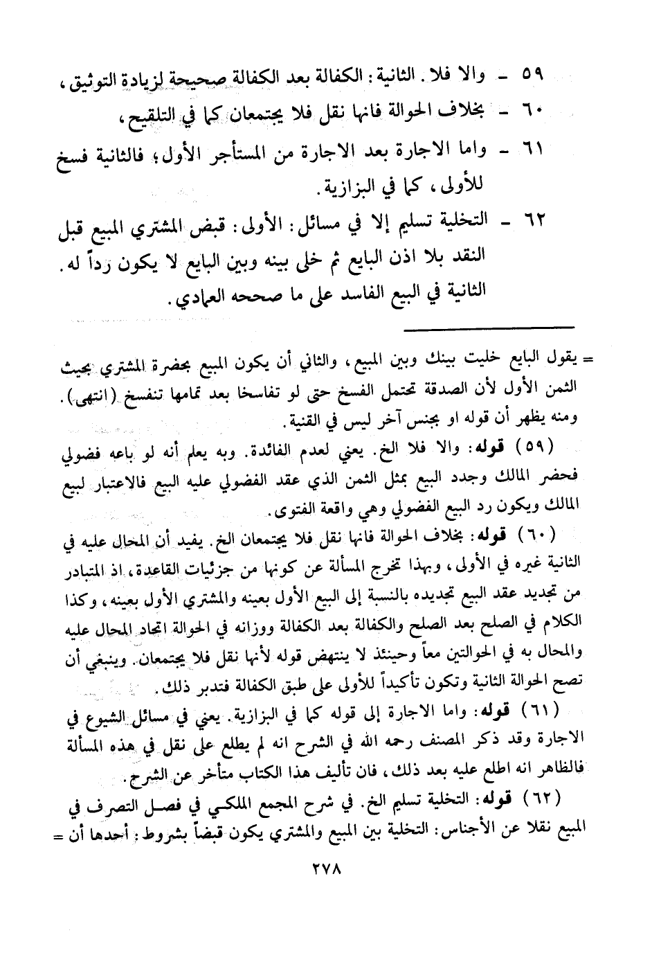 62 - التَّخْلِيَةُ تَسْلِيمٌ إلَّا فِي مَسَائِلَ: الْأُولَى: قَبْضُ الْمُشْتَرِي الْمَبِيعَ قَبْلَ النَّقْدِ بِلَا إذْنِ الْبَائِعِ ثُمَّ خَلَّى بَيْنَهُ وَبَيْنَ الْبَائِعِ لَا يَكُونُ رَدًّا لَهُ. الثَّانِيَةُ فِي الْبَيْعِ الْفَاسِدِ عَلَى مَا صَحَّحَهُ الْعِمَادِيُّ.