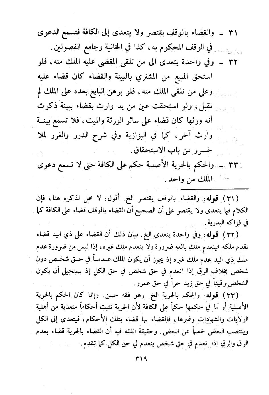 33 - وَالْحُكْمُ بِالْحُرِّيَّةِ الْأَصْلِيَّةِ حُكْمٌ عَلَى الْكَافَّةِ حَتَّى لَا تُسْمَعَ دَعْوَى الْمِلْكِ مِنْ وَاحِدٍ.