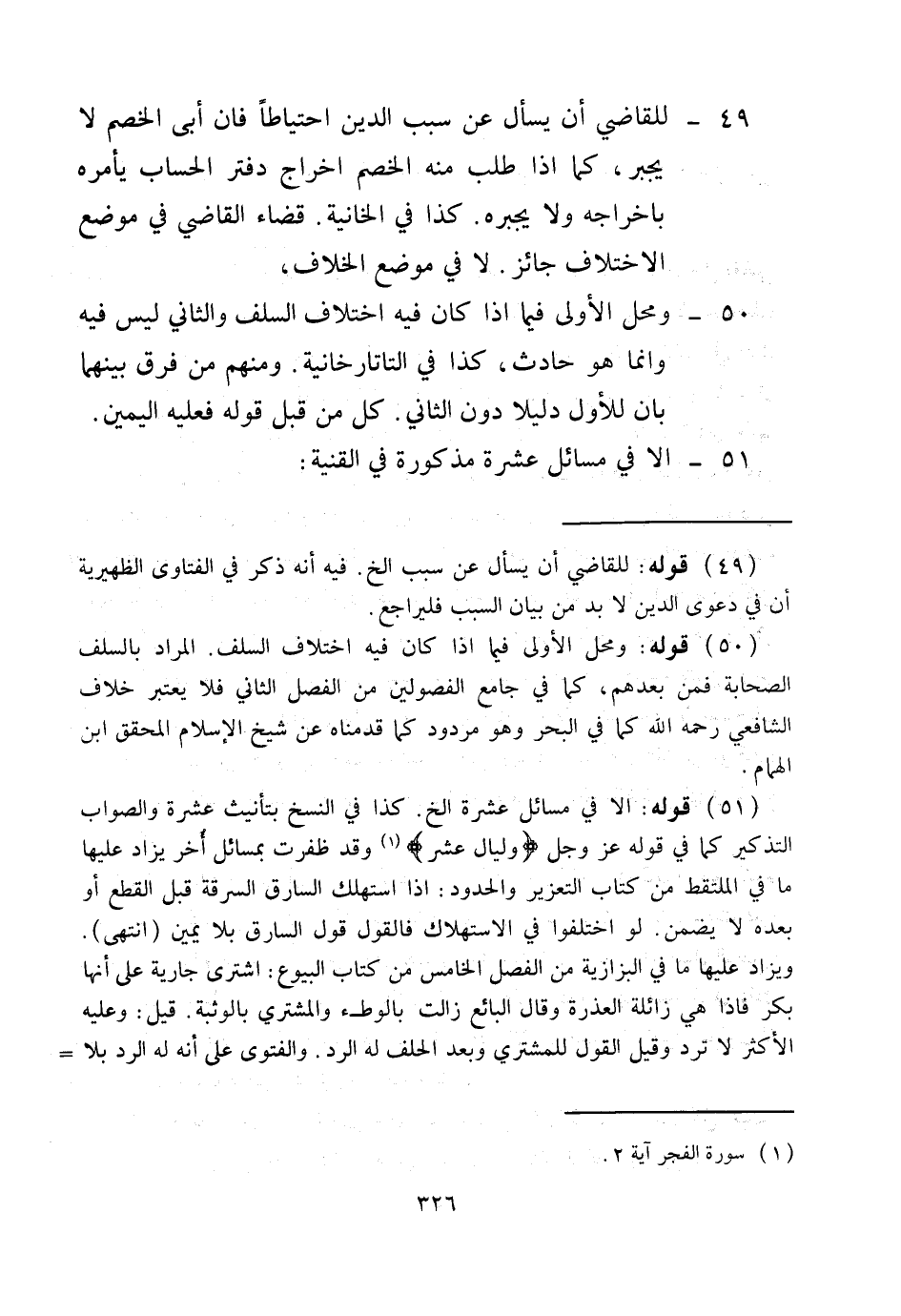 51 - إلَّا فِي مَسَائِلَ عَشْرَةٍ مَذْكُورَةٍ فِي الْقُنْيَةِ: