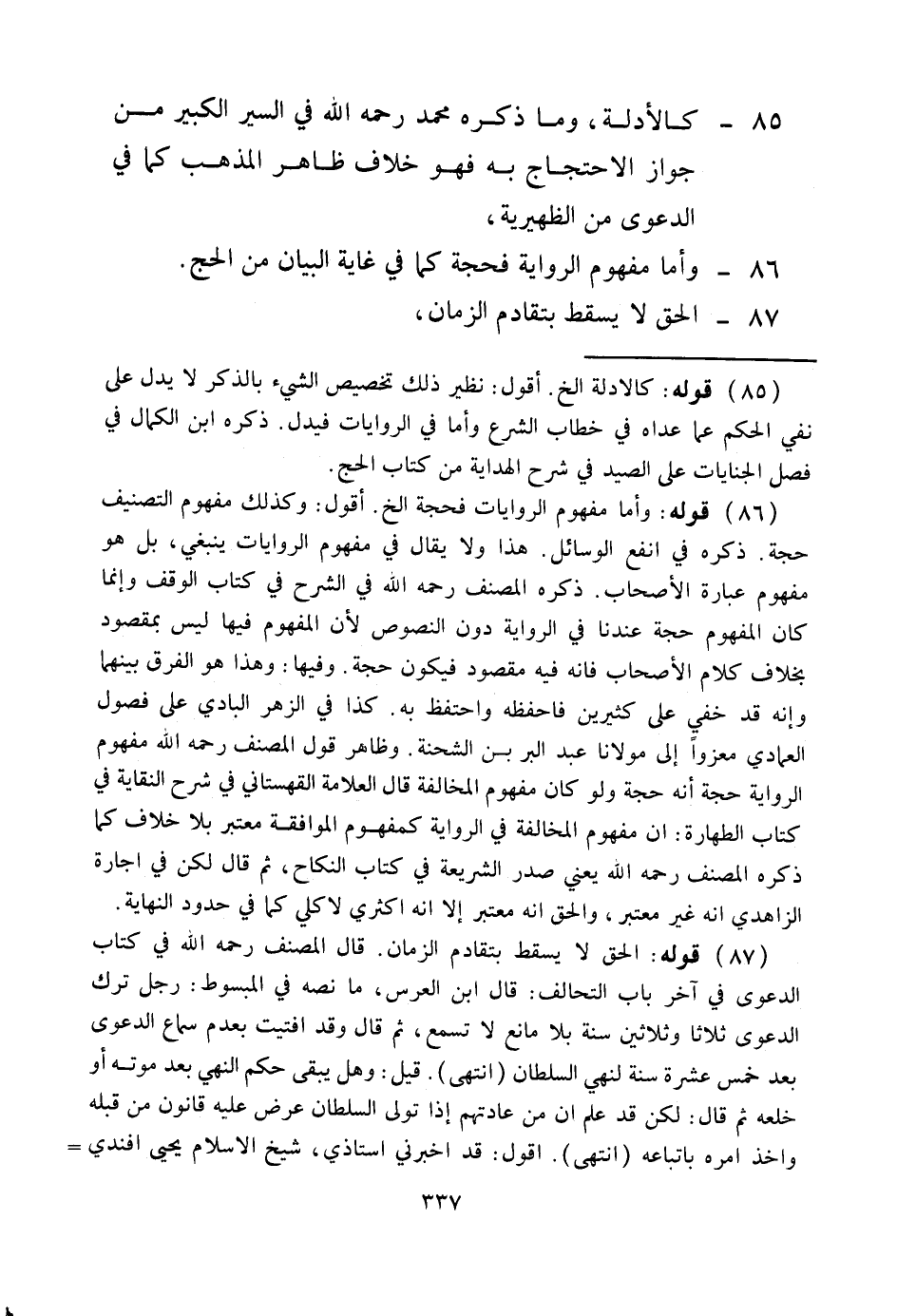 86 - وَأَمَّا مَفْهُومُ الرِّوَايَةِ فَحُجَّةٌ كَمَا فِي غَايَةِ الْبَيَانِ مِنْ الْحَجِّ