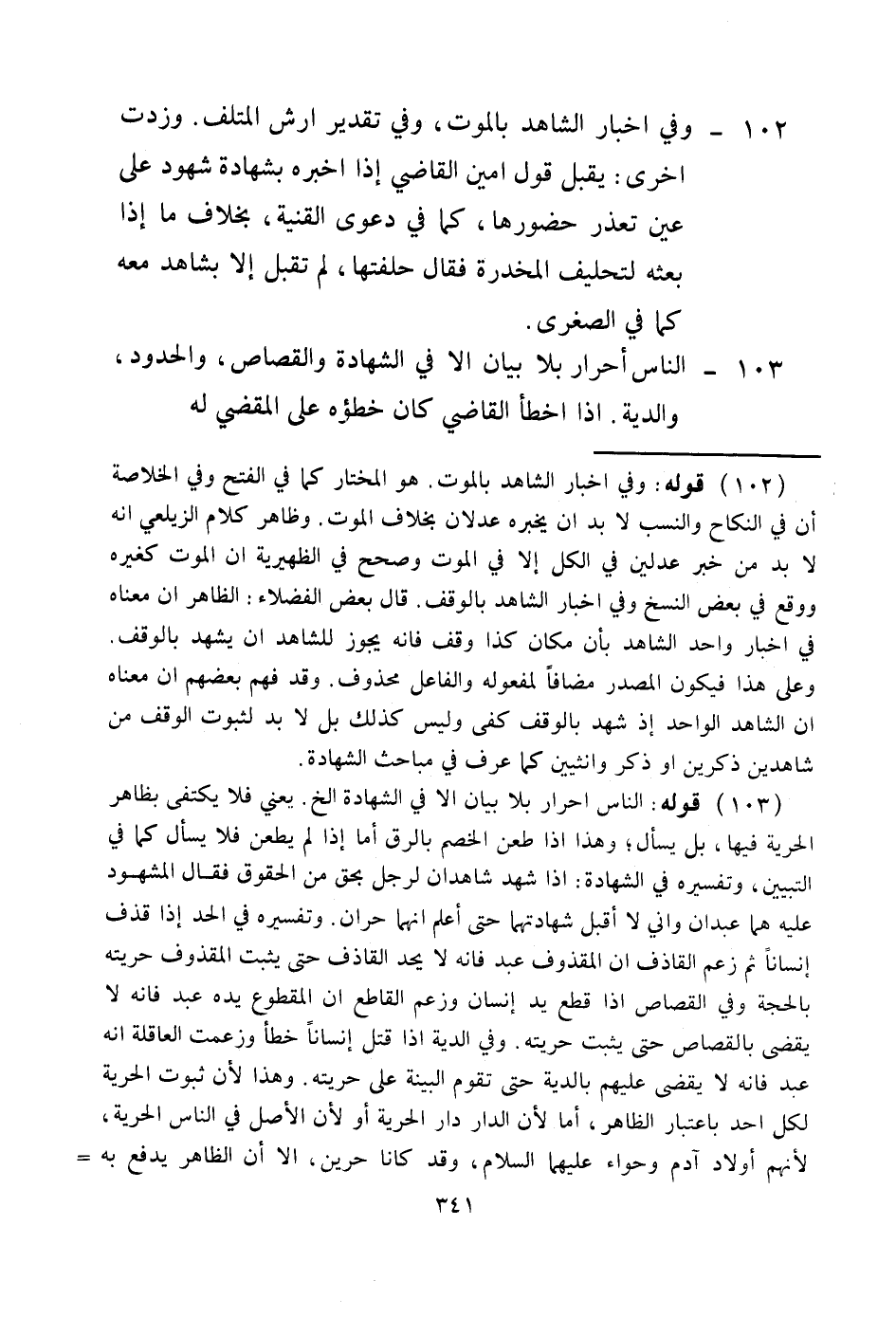 103 - النَّاسُ أَحْرَارٌ بِلَا بَيَانٍ إلَّا فِي الشَّهَادَةِ وَالْقِصَاصِ، وَالْحُدُودِ، وَالدِّيَةِ