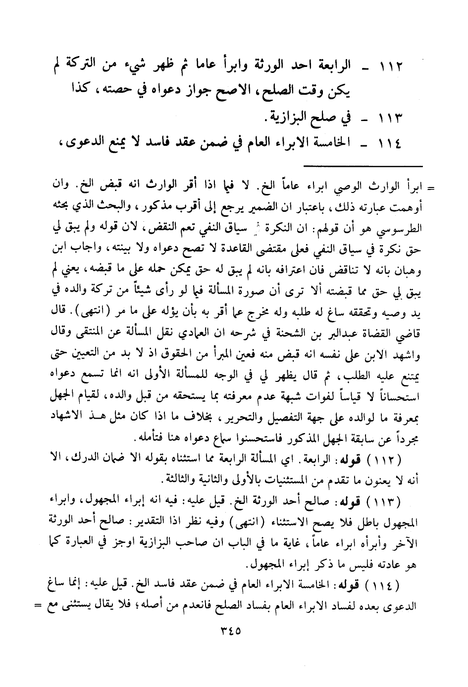 114 - الْخَامِسَةُ الْإِبْرَاءُ الْعَامُّ فِي ضِمْنِ عَقْدٍ فَاسِدٍ لَا يَمْنَعُ الدَّعْوَى،