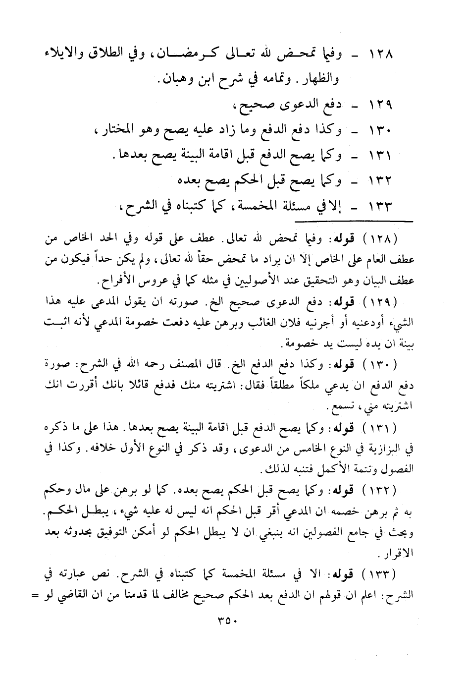 129 - دَفْعُ الدَّعْوَى صَحِيحٌ، 130 - وَكَذَا دَفْعُ الدَّفْعِ، وَمَا زَادَ عَلَيْهِ يَصِحُّ وَهُوَ الْمُخْتَارُ،