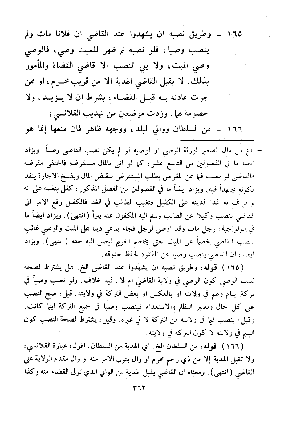 (165) قَوْلُهُ: وَطَرِيقُ نَصْبِهِ أَنْ يَشْهَدُوا عِنْدَ الْقَاضِي إلَخْ. هَلْ يُشْتَرَطُ لِصِحَّةِ نَصْبِ الْوَصِيِّ كَوْنُ الْوَصِيِّ فِي وِلَايَةِ الْقَاضِي أَمْ لَا؟ فِيهِ خِلَافٌ. وَلَوْ نَصَّبَ وَصِيًّا فِي تَرِكَةِ أَيْتَامٍ، وَهُمْ فِي وِلَايَتِهِ أَوْ بِالْعَكْسِ أَوْ بَعْضِ التَّرِكَةِ فِي وِلَايَتِهِ. قِيلَ: صَحَّ النَّصْبُ عَلَى كُلِّ حَالٍ، وَيُعْتَبَرُ التَّظَلُّمُ وَالِاسْتِعْدَاءُ فَيَنْصِبُ وَصِيًّا فِي جَمِيعِ التَّرِكَةِ أَيْنَمَا كَانَتْ. وَقِيلَ: يَنْصِبُ فِيمَا فِي وِلَايَتِهِ مِنْ التَّرِكَةِ لَا فِي غَيْرِهِ. وَقِيلَ: يُشْتَرَطُ لِصِحَّةِ النَّصْبِ كَوْنُ الْيَتِيمِ فِي وِلَايَتِهِ لَا كَوْنُ التَّرِكَةِ فِي وِلَايَتِهِ