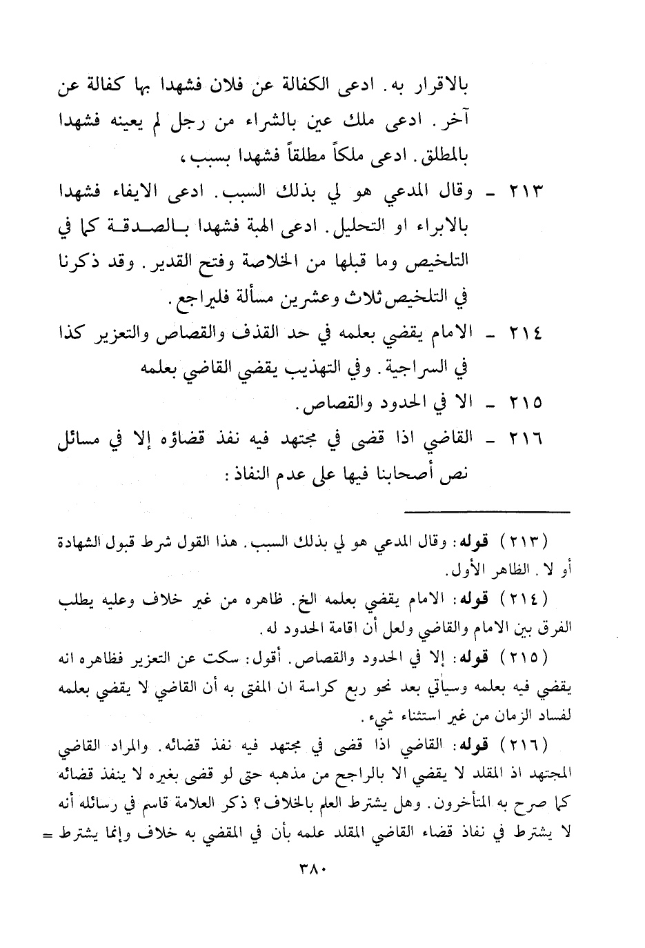 214 - الْإِمَامُ يَقْضِي بِعِلْمِهِ فِي حَدِّ الْقَذْفِ وَالْقِصَاصِ وَالتَّعْزِيرِ كَذَا فِي السِّرَاجِيَّةِ. وَفِي التَّهْذِيبِ يَقْضِي الْقَاضِي بِعِلْمِهِ 215 - إلَّا فِي الْحُدُودِ وَالْقِصَاصِ.