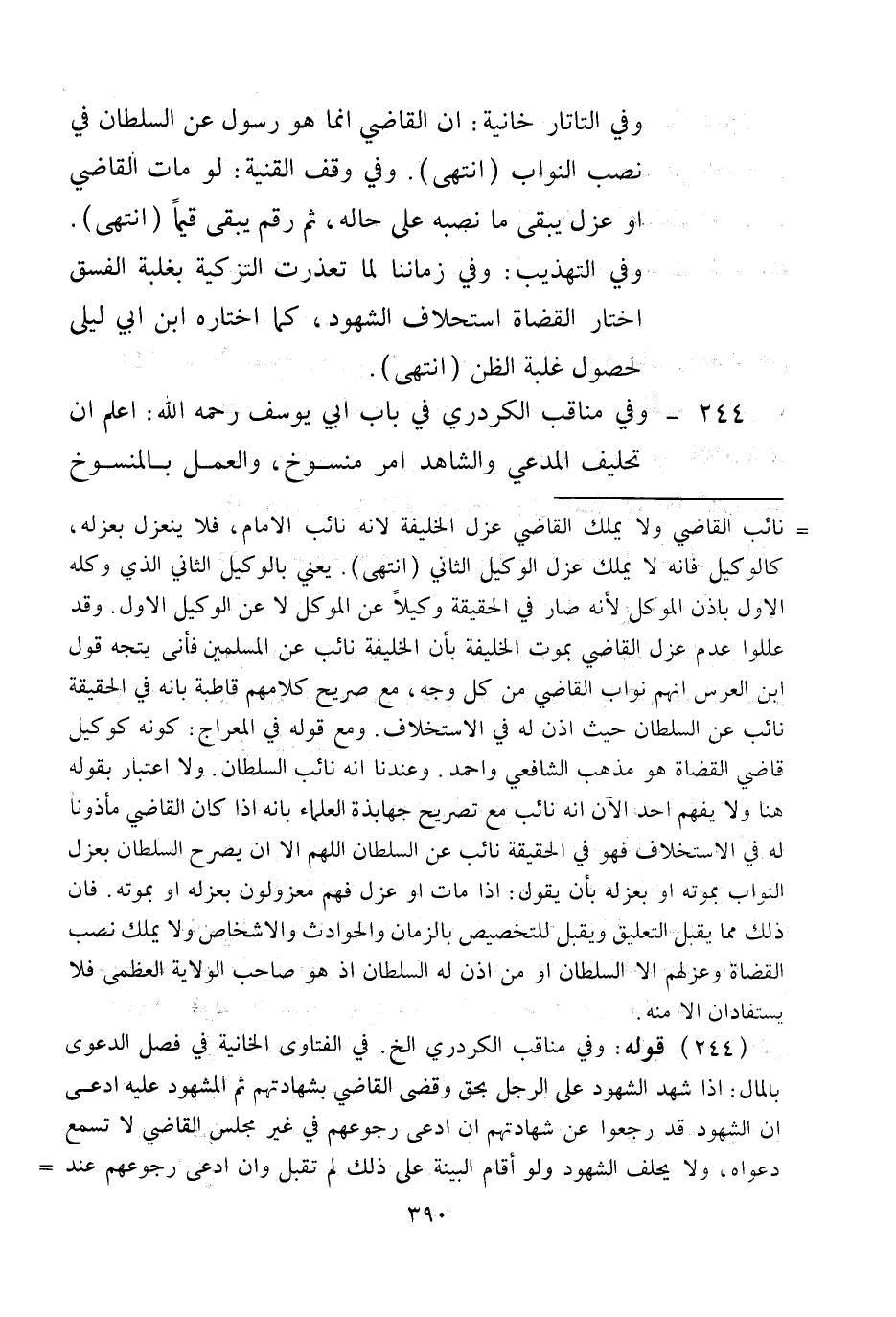 244 - وَفِي مَنَاقِبِ الْكَرْدَرِيِّ فِي بَابِ أَبِي يُوسُفَ - رَحِمَهُ اللَّهُ -: اعْلَمْ أَنَّ تَحْلِيفَ الْمُدَّعِي وَالشَّاهِدِ أَمْرٌ مَنْسُوخٌ، وَالْعَمَلُ بِالْمَنْسُوخِ،