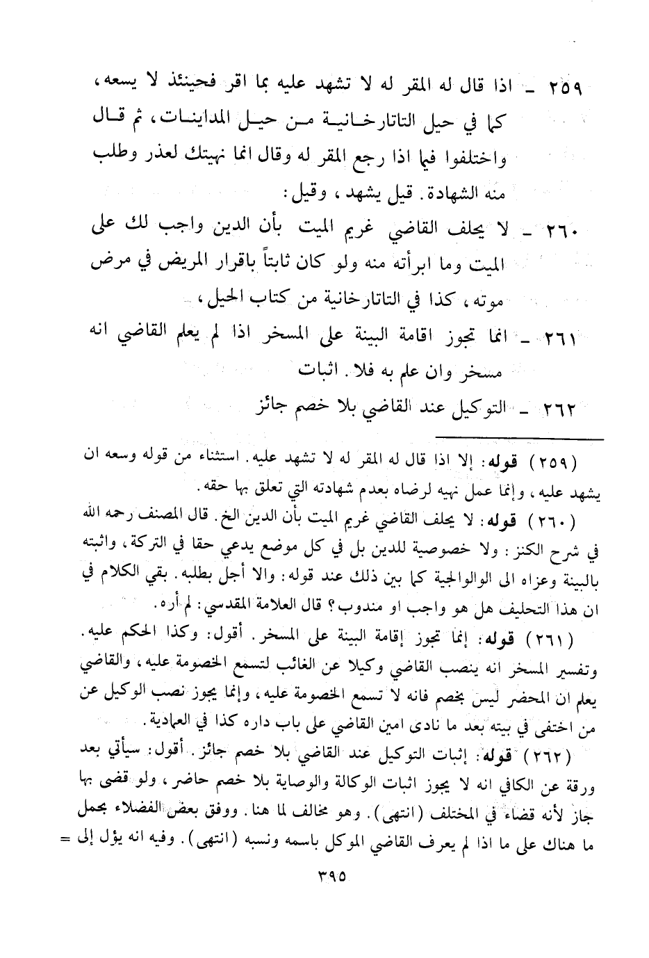 (262) قَوْلُهُ: إثْبَاتُ التَّوْكِيلِ عِنْدَ الْقَاضِي بِلَا خَصْمٍ جَائِزٌ. أَقُولُ: سَيَأْتِي بَعْدَ وَرَقَةٍ عَنْ الْكَافِي أَنَّهُ لَا يَجُوزُ إثْبَاتُ الْوَكَالَةِ وَالْوِصَايَةِ بِلَا خَصْمٍ حَاضِرٍ، وَلَوْ قَضَى بِمَا جَازَ؛ لِأَنَّهُ قَضَاءٌ فِي الْمُخْتَلِفِ (انْتَهَى) . وَهُوَ مُخَالِفٌ لِمَا هُنَا. وَوَفَّقَ بَعْضُ الْفُضَلَاءِ بِحَمْلِ مَا هُنَاكَ عَلَى مَا إذَا لَمْ يَعْرِفْ الْقَاضِي الْمُوَكِّلَ بِاسْمِهِ وَنَسَبِهِ (انْتَهَى) .