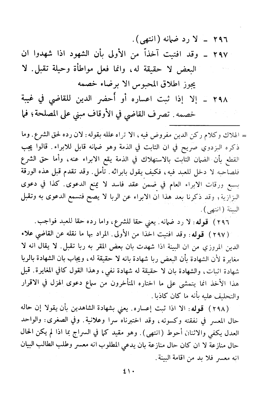 ـــــــــــــــــــــــــــــQالْهَلَاكِ، وَكَلَامُ رُكْنِ الدِّينِ مَفْرُوضٌ فِيهِ، أَلَا تَرَاهُ عَلَّلَهُ بِقَوْلِهِ: لِأَنَّ رَدَّهُ لِحَقِّ الشَّرْعِ.