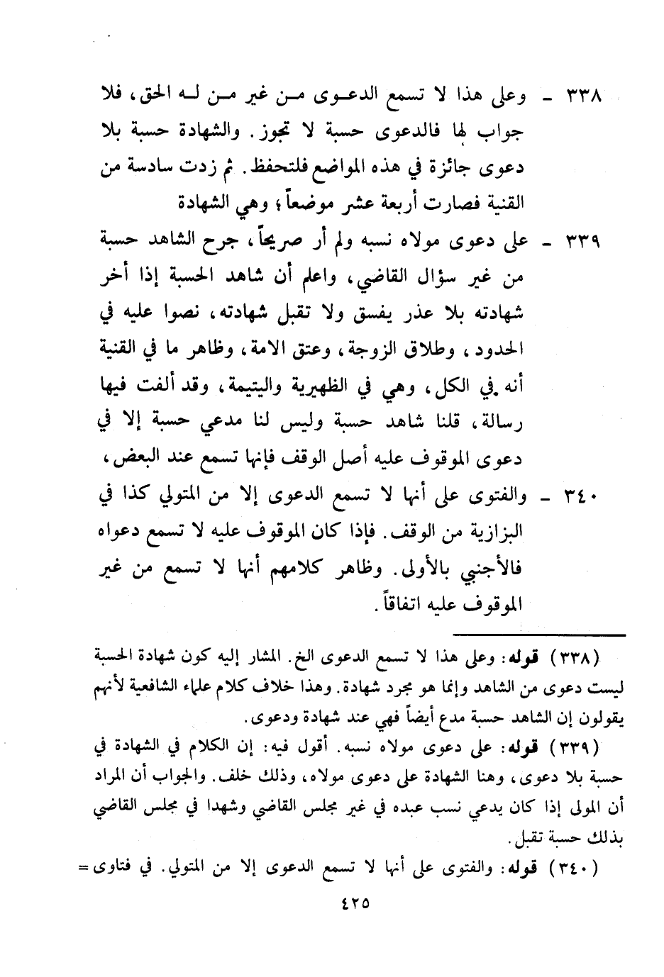 وَهَذَا خِلَافُ كَلَامِ عُلَمَاءِ الشَّافِعِيَّةِ؛ لِأَنَّهُمْ يَقُولُونَ: إنَّ الشَّاهِدَ حِسْبَةً مُدَّعٍ أَيْضًا فَهِيَ عِنْدَهُ شَهَادَةٌ وَدَعْوَى. (339) قَوْلُهُ: