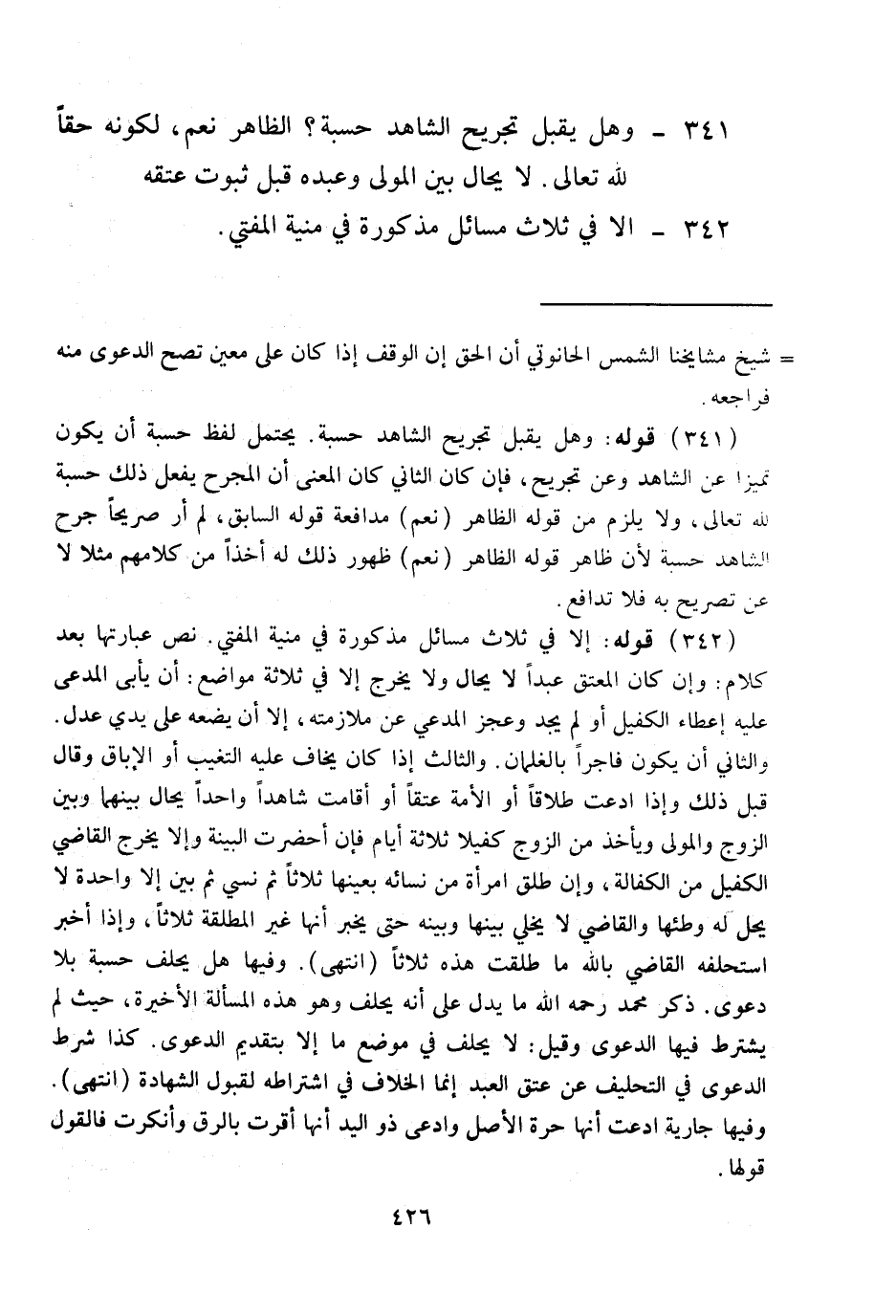 ـــــــــــــــــــــــــــــQشَيْخِ مَشَايِخِنَا الشَّمْسِ الْحَانُوتِيِّ أَنَّ الْحَقَّ إنَّ الْوَقْفَ إذَا كَانَ عَلَى مُعَيَّنٍ تَصِحُّ الدَّعْوَى مِنْهُ فَرَاجِعْهُ (341)