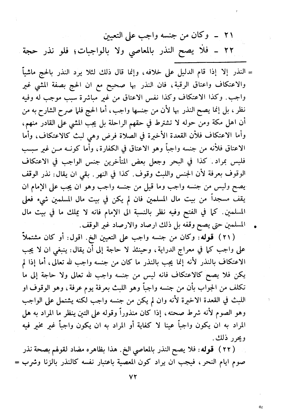 22 - فَلَا يَصِحُّ النَّذْرُ بِالْمَعَاصِي وَلَا بِالْوَاجِبَاتِ؛ فَلَوْ نَذَرَ حَجَّةَ
