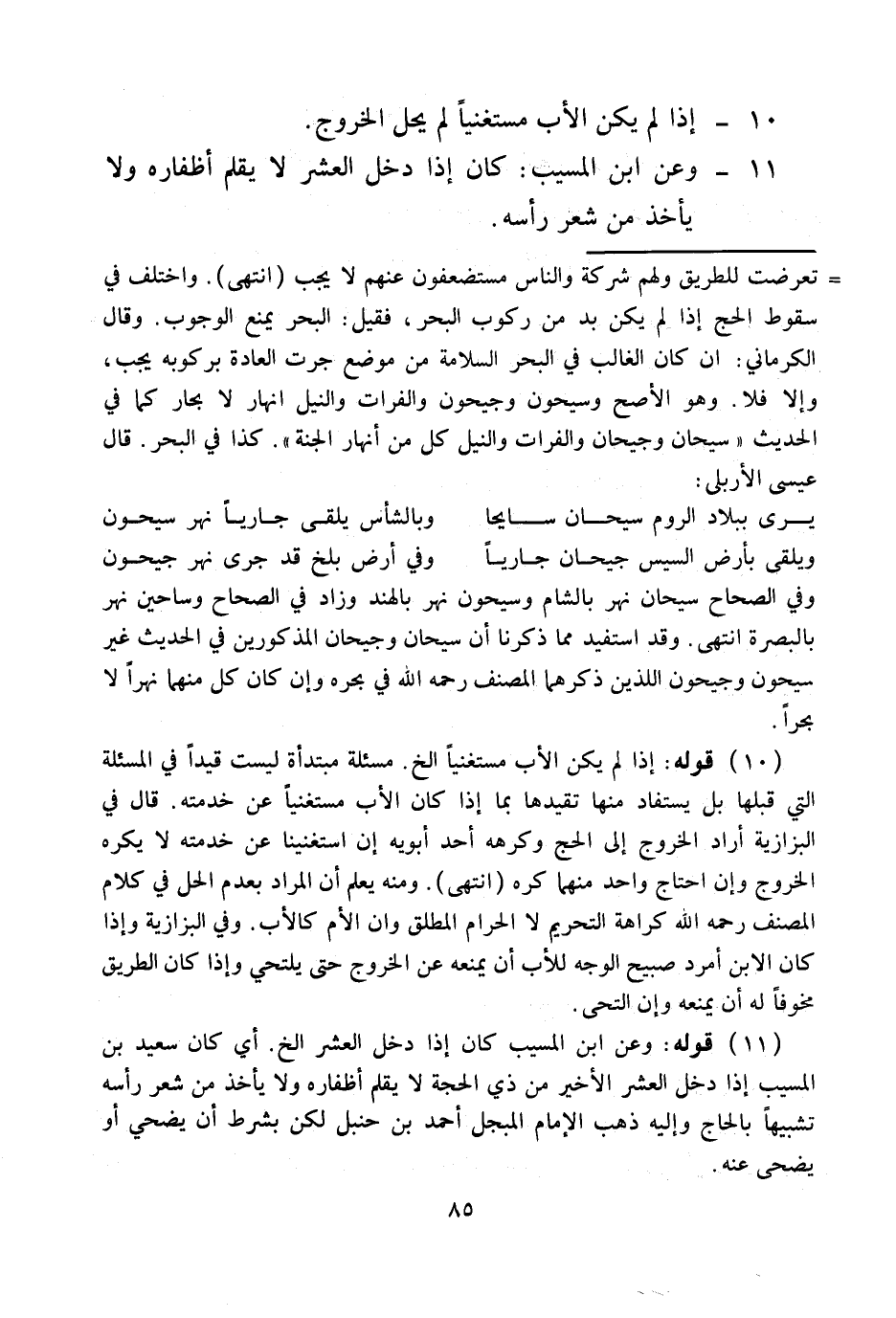 وَاخْتُلِفَ فِي سُقُوطِ الْحَجِّ إذَا لَمْ يَكُنْ بُدٌّ مِنْ رُكُوبِ الْبَحْرِ، فَقِيلَ: الْبَحْرُ يَمْنَعُ الْوُجُوبَ. وَقَالَ الْكَرْمَانِيُّ: إنْ كَانَ الْغَالِبُ فِي الْبَحْرِ السَّلَامَةَ مِنْ مَوْضِعٍ جَرَتْ الْعَادَةُ بِرُكُوبِهِ يَجِبُ، وَإِلَّا فَلَا. وَهُوَ الْأَصَحُّ وَسَيْحُونُ وَجَيْحُونُ وَالْفُرَاتُ وَالنِّيلُ أَنْهَارٌ لَا بِحَارُ كَمَا فِي الْحَدِيثِ «سَيْحَانُ وَجَيْحُونُ وَالْفُرَاتُ وَالنِّيلُ كُلٌّ مِنْ أَنْهَارِ الْجَنَّةِ» . كَذَا فِي الْبَحْرِ. قَالَ عِيسَى الْأَرْبِلِّيُّ: