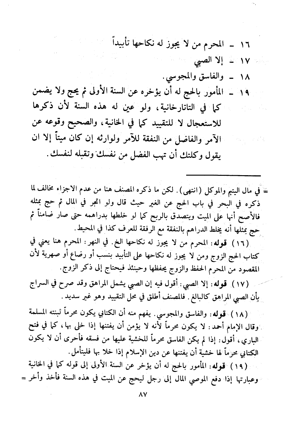 (16) قَوْلُهُ: الْمَحْرَمُ مَنْ لَا يَجُوزُ لَهُ نِكَاحُهَا إلَخْ. فِي النَّهْرِ: الْمَحْرَمُ هُنَا يَعْنِي فِي كِتَابِ الْحَجِّ الزَّوْجُ وَمَنْ لَا يَجُوزُ لَهُ نِكَاحُهَا عَلَى التَّأْبِيدِ بِنَسَبٍ أَوْ رَضَاعٍ أَوْ صِهْرِيَّةٍ لِأَنَّ الْمَقْصُودَ مِنْ الْمَحْرَمِ الْحِفْظَ وَالزَّوْجُ يَحْفَظُهَا وَحِينَئِذٍ فَيَحْتَاجُ إلَى ذِكْرِ الزَّوْجِ. (17) قَوْلُهُ: إلَّا الصَّبِيَّ: أَقُولُ فِيهِ إنَّ الصَّبِيَّ يَشْمَلُ الْمُرَاهِقَ وَقَدْ صَرَّحَ فِي السِّرَاجِ بِأَنَّ الصَّبِيَّ الْمُرَاهِقَ كَالْبَالِغِ. فَالْمُصَنِّفُ أَطْلَقَ فِي مَحَلِّ التَّقْيِيدِ وَهُوَ غَيْرُ سَدِيدٍ. (18) قَوْلُهُ: وَالْفَاسِقُ وَالْمَجُوسِيُّ. يُفْهَمُ مِنْهُ أَنَّ الْكِتَابِيَّ يَكُونُ مَحْرَمًا لِبِنْتِهِ الْمُسْلِمَةِ وَقَالَ الْإِمَامُ أَحْمَدَ: لَا يَكُونُ مَحْرَمًا لِأَنَّهُ لَا يُؤْمِنُ أَنْ يَفْتِنَهَا إذَا خَلَا بِهَا، كَمَا فِي فَتْحِ الْبَارِي، أَقُولُ: إذَا لَمْ يَكُنْ الْفَاسِقُ مَحْرَمًا لِلْخَشْيَةِ عَلَيْهَا مِنْ فِسْقِهِ فَأَحْرَى أَنْ لَا يَكُونَ الْكِتَابِيُّ مَحْرَمًا لَهَا خَشْيَةَ أَنْ يَفْتِنَهَا عَنْ دِينِ الْإِسْلَامِ إذَا خَلَا بِهَا فَلْيُتَأَمَّلْ