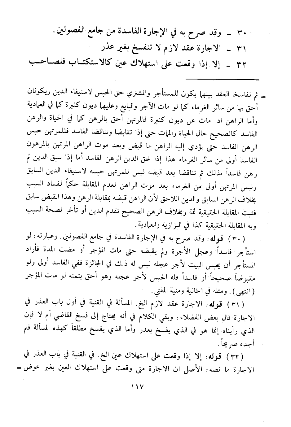 31 - الْإِجَارَةُ عَقْدٌ لَازِمٌ لَا تَنْفَسِخُ بِغَيْرِ عُذْرٍ 32 - إلَّا إذَا وَقَعَتْ عَلَى اسْتِهْلَاكِ عَيْنٍ كَالِاسْتِكْتَابِ فَلِصَاحِبِ