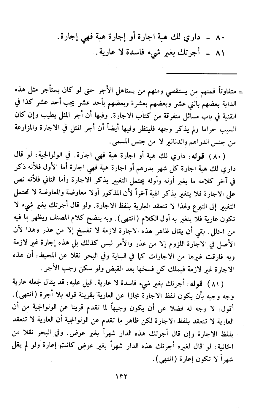 81 - أَجَّرْتُك بِغَيْرِ شَيْءٍ فَاسِدَةٌ لَا عَارِيَّةٌ.